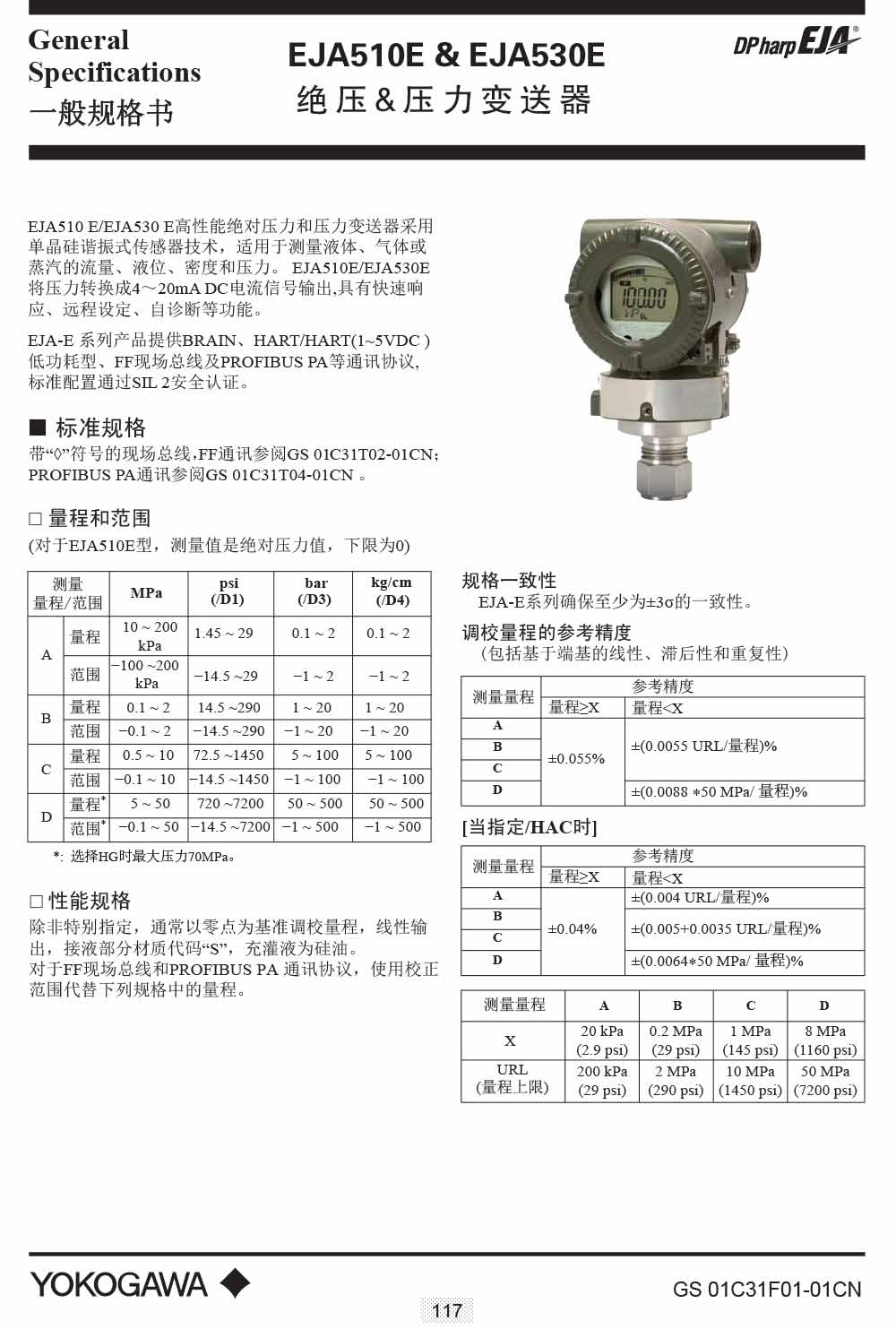 名稱:EJA510E&EJA530E絕壓&壓力變送器